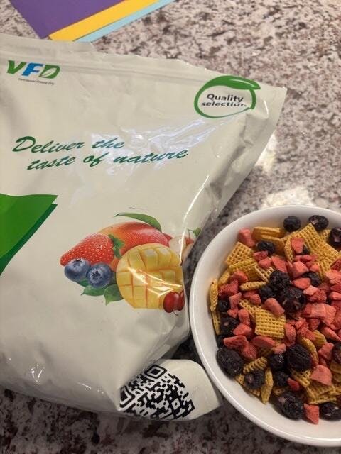 - Pulse freeze-dried strawberries into small pieces or powder.