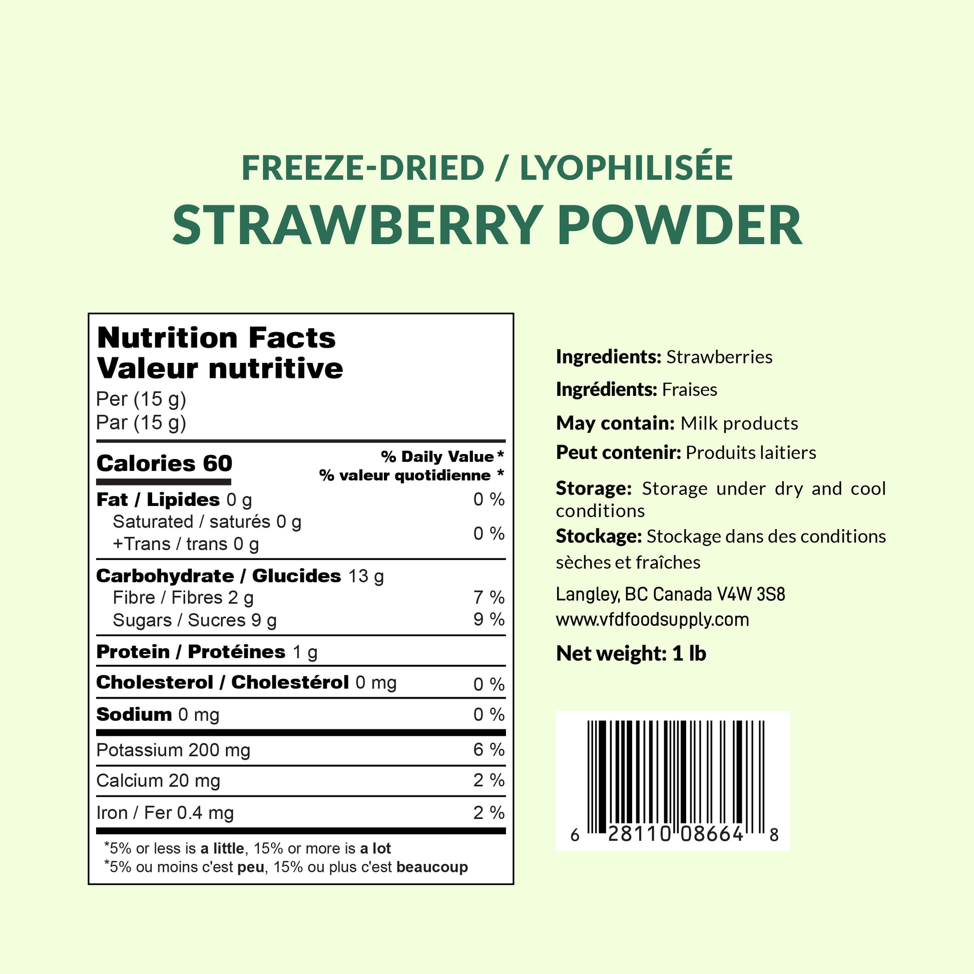 Carefully freeze-dried and finely milled to preserve the bright taste and natural sweetness of real strawberries.