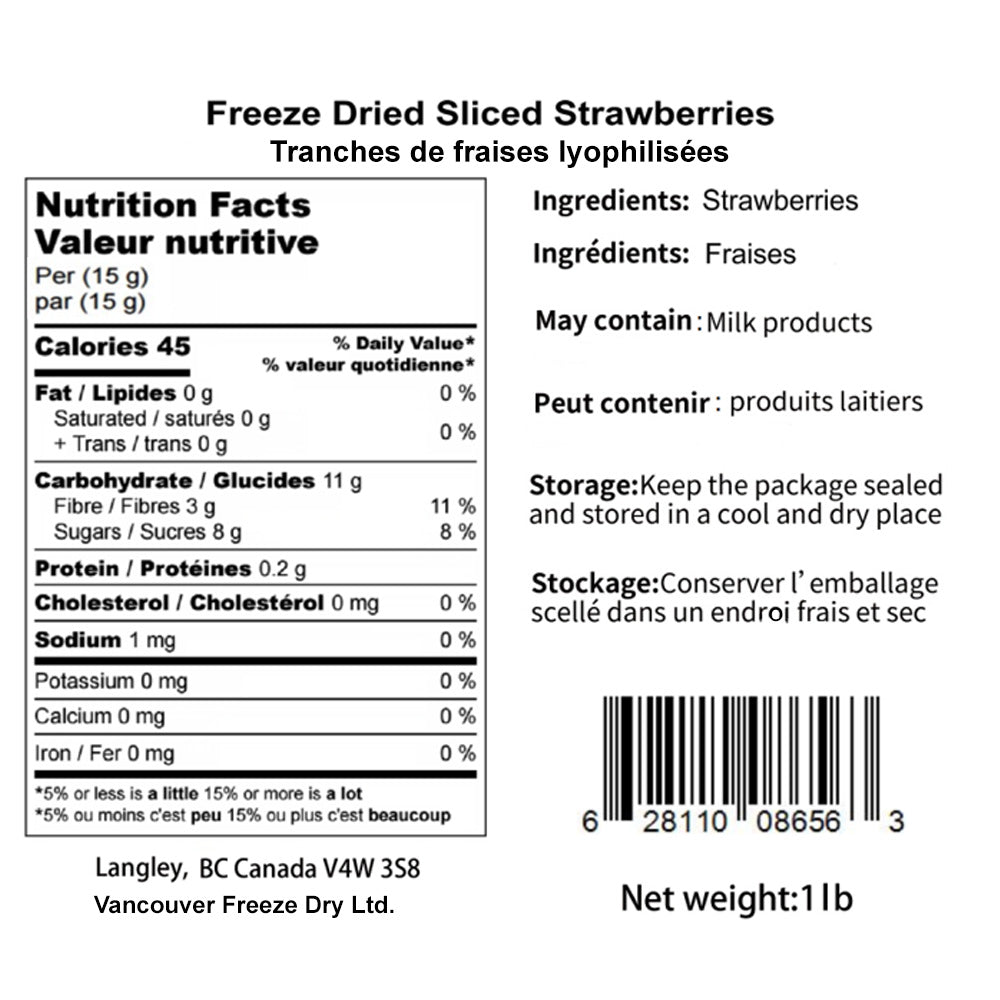 Enjoy real strawberries anytime with our 1 lb bag of freeze-dried slices. Made from premium non-GMO fruit, these slices contain no added sugar, no preservatives, and no artificial ingredients—just 100% pure strawberries, freeze-dried to lock in natural flavour, colour, and nutrients.